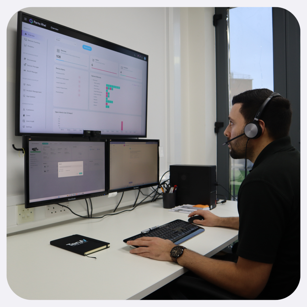 At TenUnify, we deliver managed AV services that keep meeting rooms and workplace technology reliable, fully supported and performing at their best across the UK. Through proactive maintenance, real‑time monitoring and fast, expert engineering support, we minimise downtime and ensure organisations get the maximum value and uptime from their AV equipment.